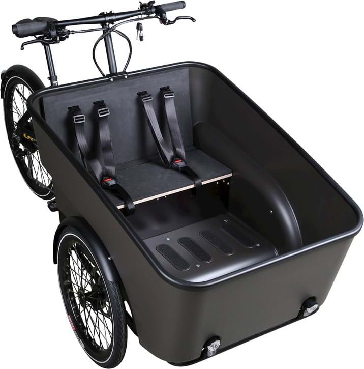 Centurion E Street er en smart og sikker el-ladcykel, der komfortabelt kan transportere 2 børn. Du kan også montere 1 barnestol via ISOFIX-monteringspunkterne. E Street er yderst praktisk og følger Centurion DNA’et for funktionalitet og design, og kan prale af innovative funktioner såsom USB-opladning i kabinen. Det gennemførte stel, nøje udvalgte komponenter og et elsystem fra danske Promovec gør cyklen kraftfuld, manøvrerbar og nem at cykle på. Farve sort, Kr. 29.999,-