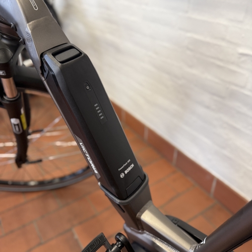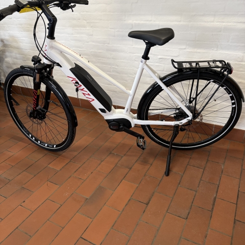 28”, el, unisex, Bosch centermotor, hydraulisk skivebremse, 9 udvendige gear, affjedring i forgaffel, farve blå/gul, Kr. 21.999,-